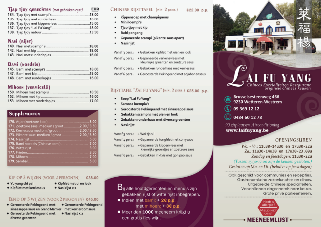 Het nieuwe jaar komt er weer aan en daarvoor hebben we prachtige menu’s samengesteld die verkrijgbaar zijn op de komende feestdagen! Graag op voorhand reserveren.